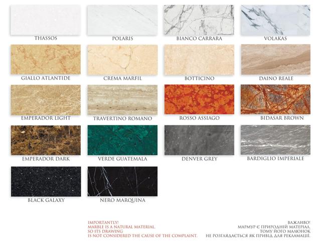 Материалы: из натурального мрамора Bidasar Brown, Giallo Atlantide